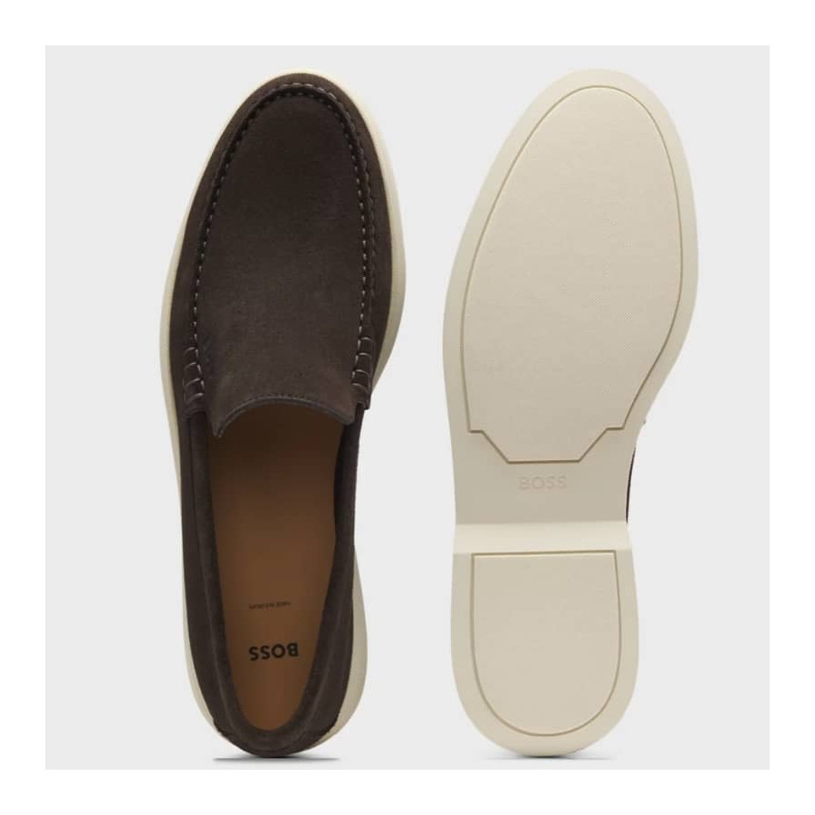 Le mocassin de la marque BOSS est bien plus qu'une simple chaussure, c'est une véritable signature de style qui souligne l'identité de celui qui le porte.
